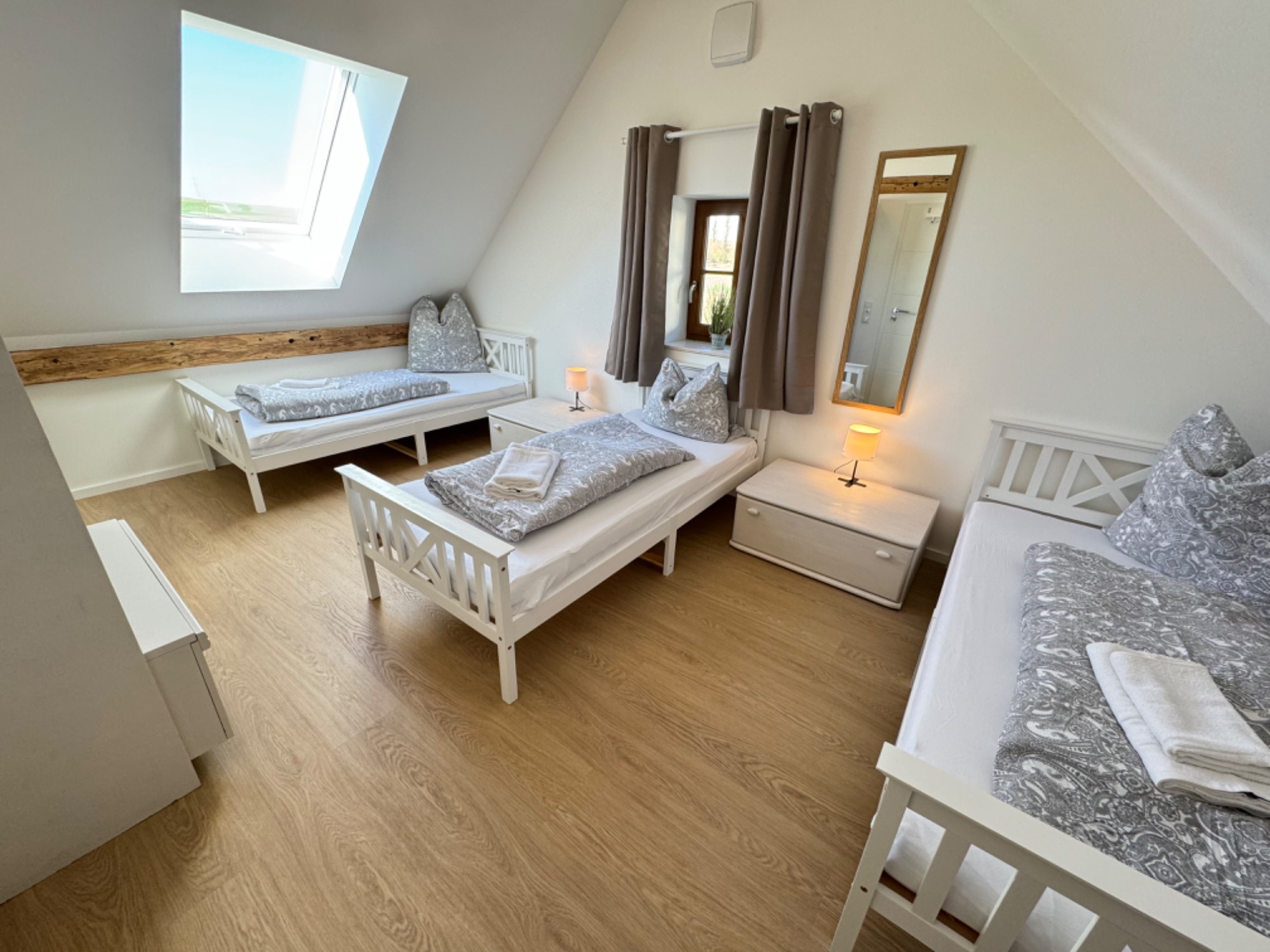 - 2x Drei-Bett-Zimmer (je 1 Etagenbett pro Zimmer)